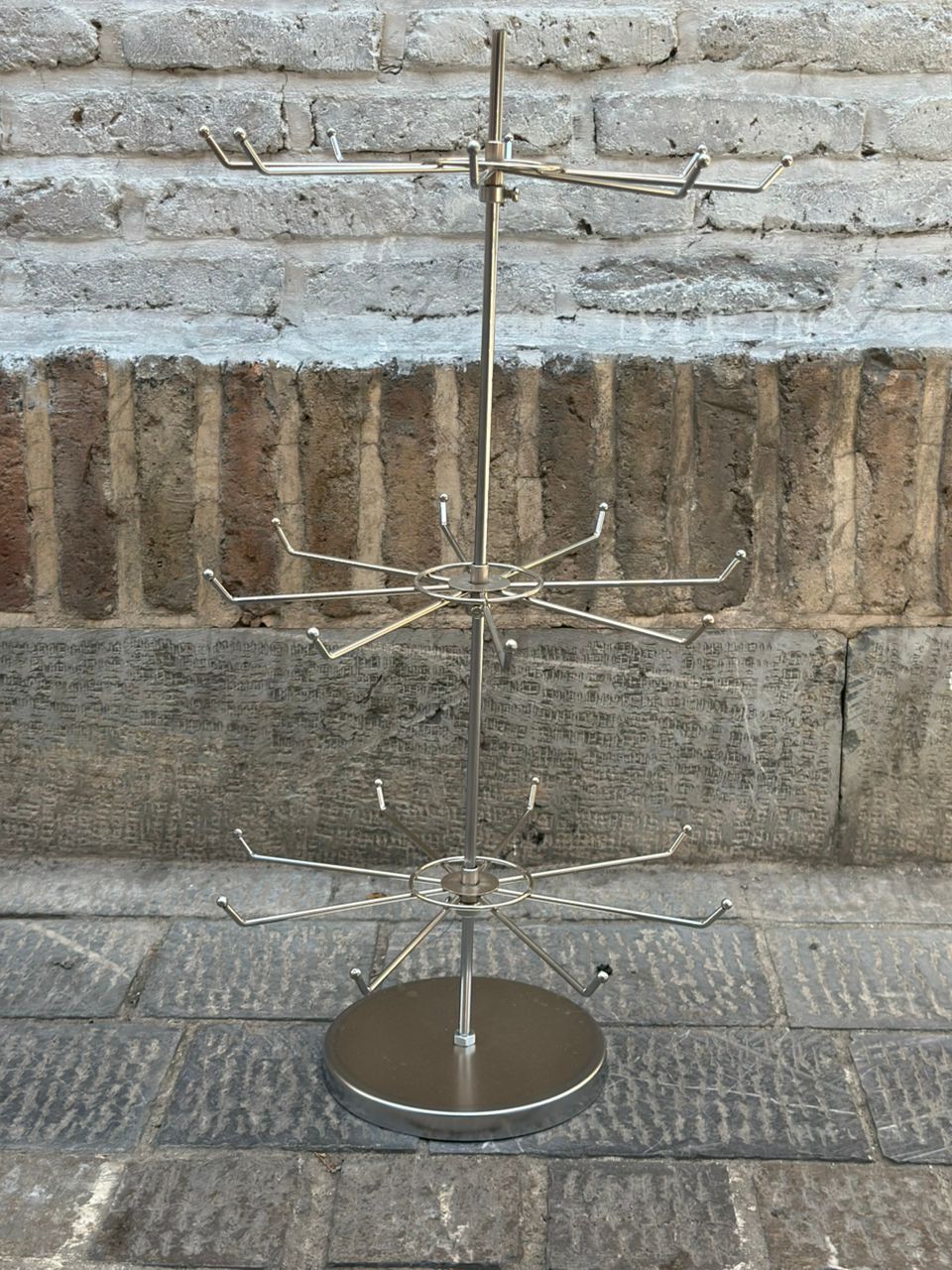 با این استند فلزی سهطبقه، جلوهای منظم، زیبا و حرفهای به نمایش اکستنشنهای مو بدهید. طراحی دایرهای و چندطبقه آن با قلابهای متعدد، امکان آویزان کردن انواع اکستنشن در رنگها و مدلهای مختلف را فراهم میکند تا مشتریان بتوانند به راحتی انتخاب کنند.