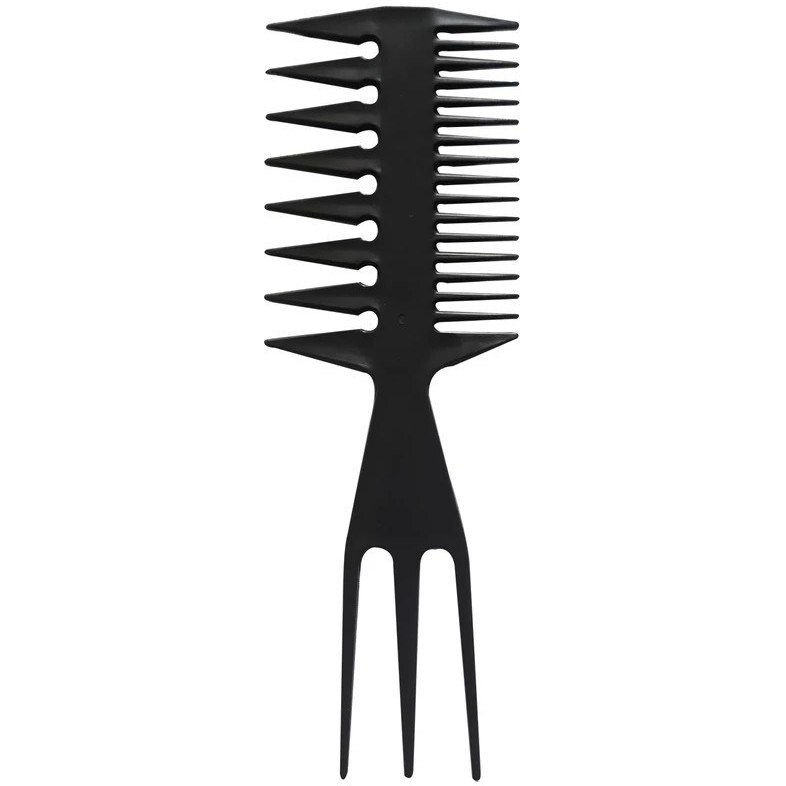 در بخش پایینی، سه چنگال بلند و نوکتیز قرار دارد که برای تقسیمبندی دقیق مو، جدا کردن لایهها، یا حتی فرمدهی به شینیونها کاربرد دارد. این طراحی ترکیبی، سرعت و دقت در آرایش مو را افزایش داده و نیاز به چند ابزار جداگانه را برطرف میکند.