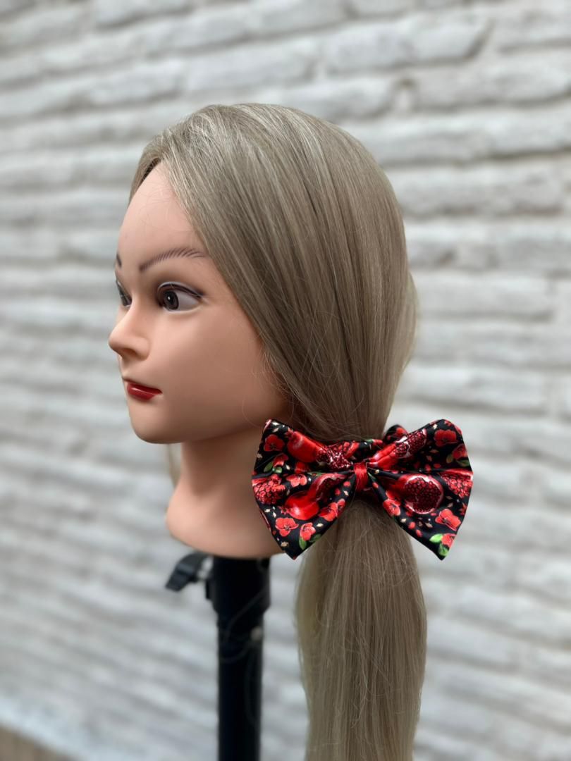 با پاپیون مشکی طرح انار، استایلت رو خاص‌تر از همیشه کن! زمینه مشکی شیک با نقش‌های برجسته انار قرمز و گیلاس، جلوه‌ای چشم‌گیر و فانتزی به موها می‌ده و برای مناسبت‌هایی مثل شب یلدا یا مهمونی‌های زمستانی عالیه. این پاپیون نه‌تنها نماد زیبایی سنتی ایرانیه، بلکه با رنگ‌های متضادش، حس مدرن و متفاوتی رو منتقل می‌کنه.